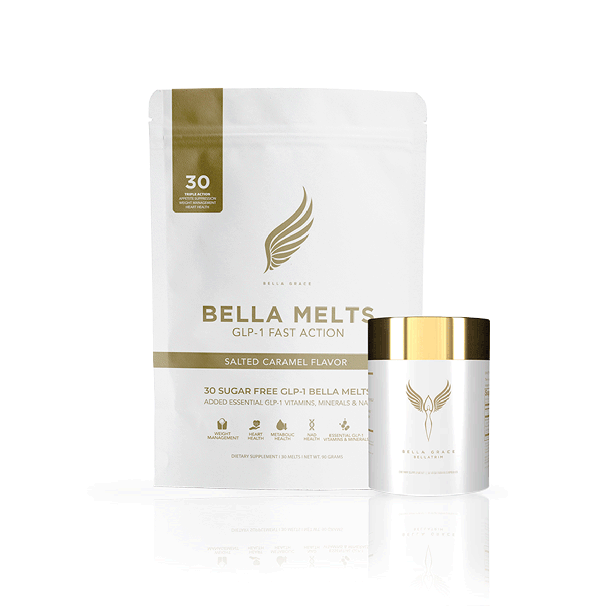يعمل هذا المزيج على تنشيط إنتاج الجسم لهرمون GLP-1 بشكل طبيعي دون الحاجة إلى الحقن أو التعرض لآثار جانبية قاسية. يعمل كل من Bella Melts و BellaTrim معًا على دعم نهج أكثر ذكاءً واستدامة لإدارة الوزن من خلال تهدئة الرغبة الشديدة في تناول الطعام، وتقليل هرمونات التوتر، ودعم صحة التمثيل الغذائي.